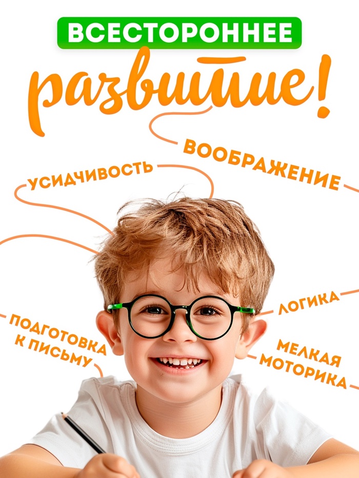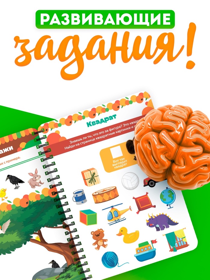 - 32 страницы с заданиями на развитие мышления, мелкой моторики и изучение мира.