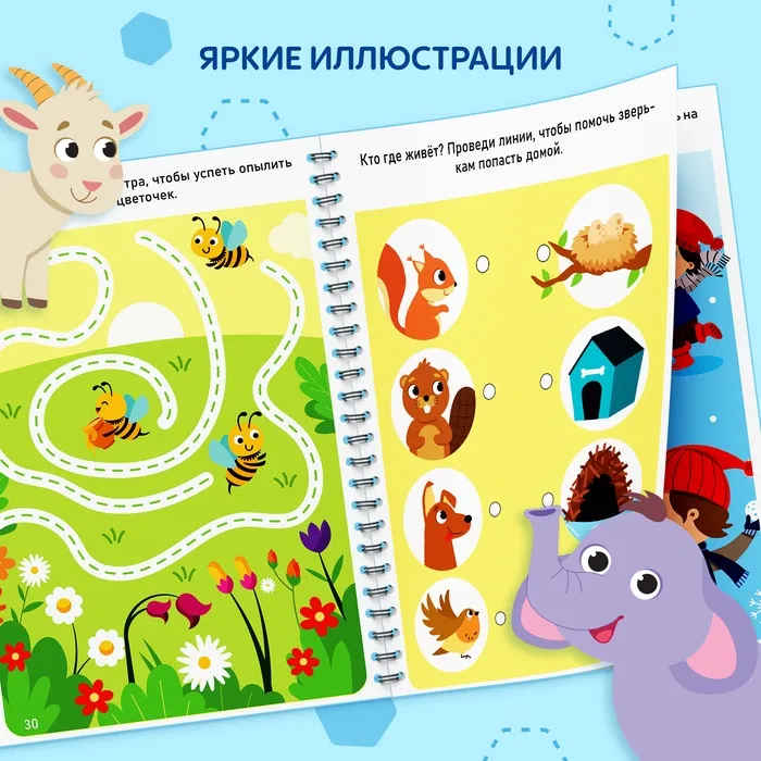 - 40 страниц разнообразных упражнений на развитие моторики, изучение линий и цветов.