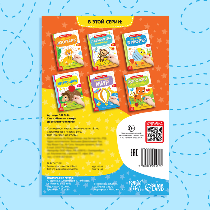 Книги с маркерами — это бесконечное удовольствие и развивающая игра в одном издании. Малыш может рисовать, обводить и выполнять увлекательные задания, а затем стереть всё написанное с помощью колпачка и начать заново. Маркер легко удаляется, и любимые задания можно выполнять снова и снова.