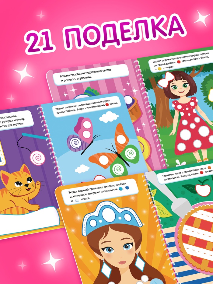 Книга «Многоразовые аппликации пластилином для девочек», 21 поделка — Характеристики