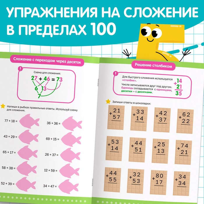 - Освоит счёт в пределах сотни, научится складывать числа классическим способом, а также столбиком.