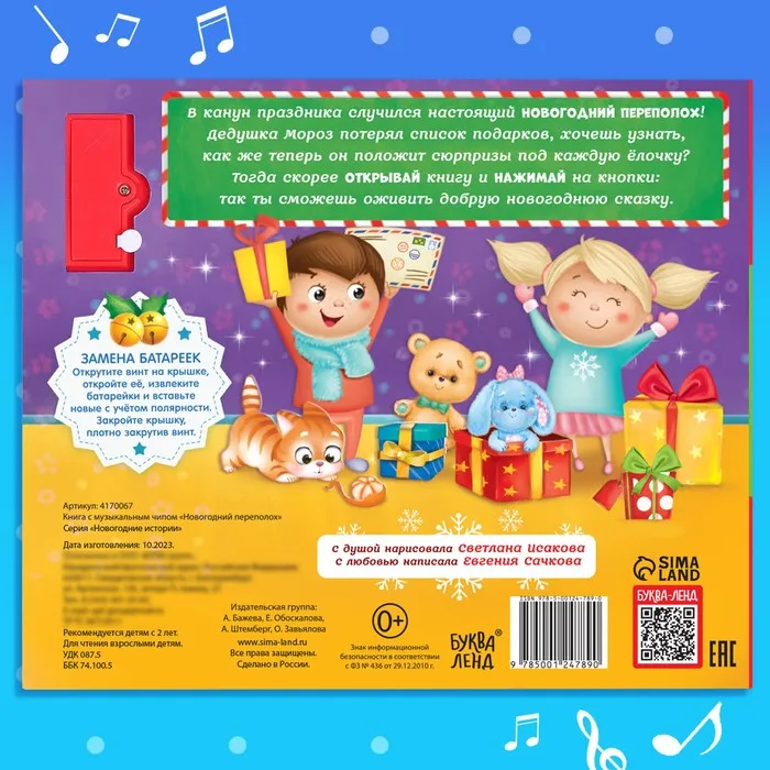 Книга музыкальная «Новогодний переполох», 4 звука — Характеристики