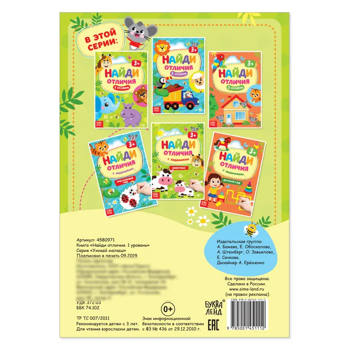 Книга «Найди отличия: 1-й уровень» — это комплекс типовых заданий для ребёнка, направленных на развитие внимания, скорости реакции, смекалки, памяти и визуального восприятия.