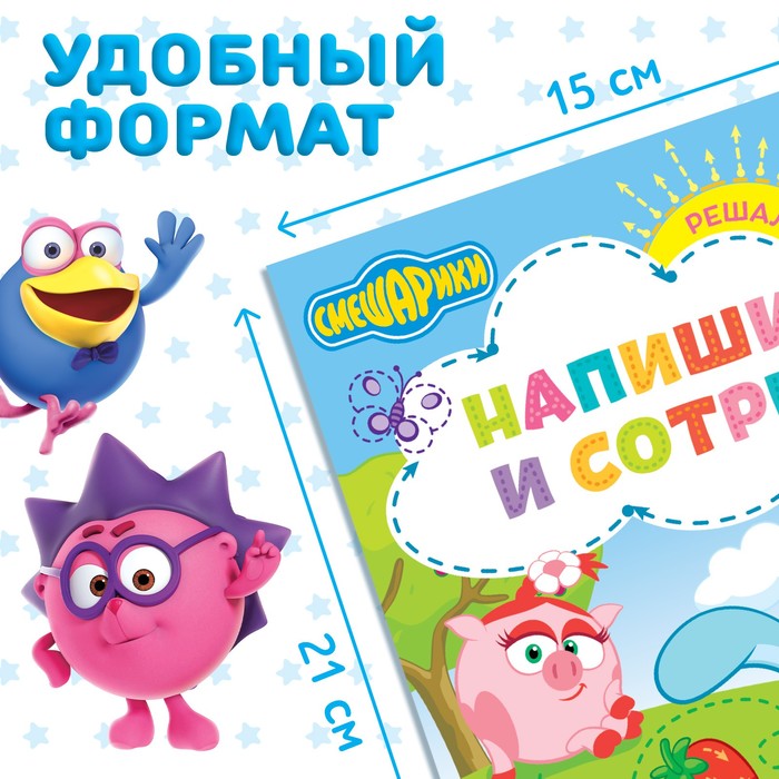 Яркие иллюстрации с любимыми смешариками сделают занятия веселее и интереснее.