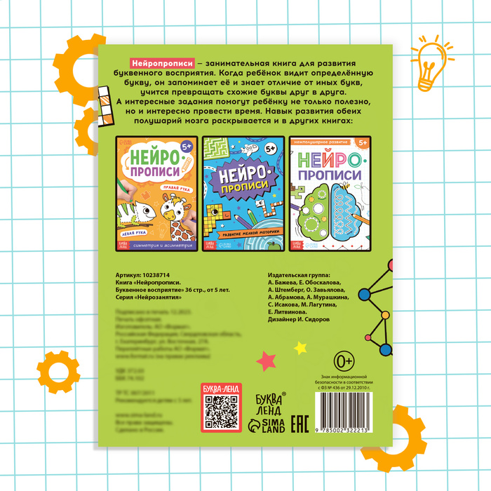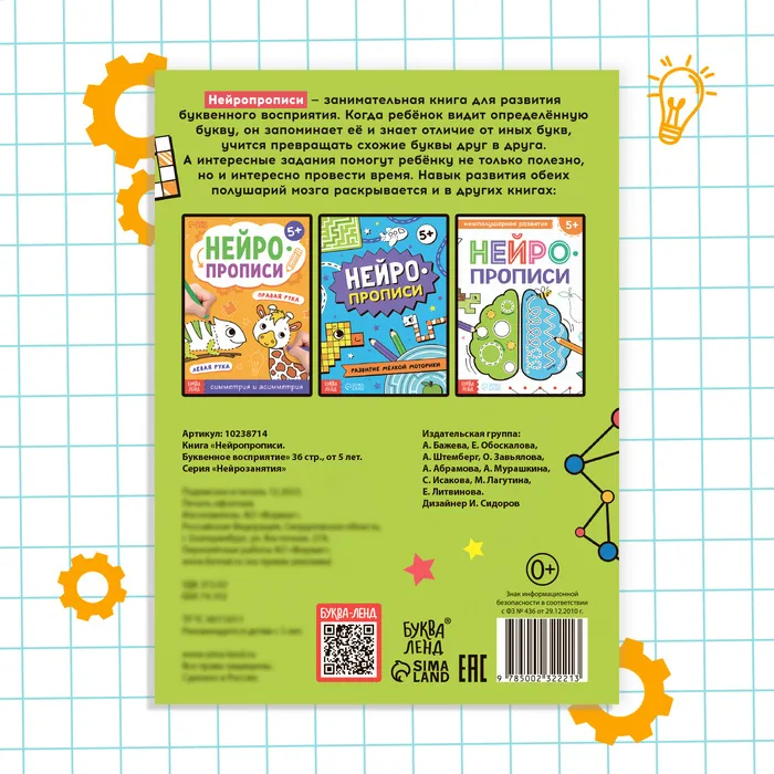Книга «Нейропрописи. Буквенное восприятие», 36 стр., от 5 лет — Характеристики