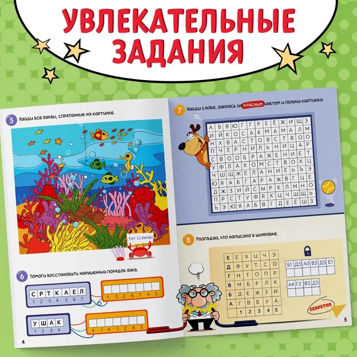 - Содержит разнообразные задания для прокачки интелекта.