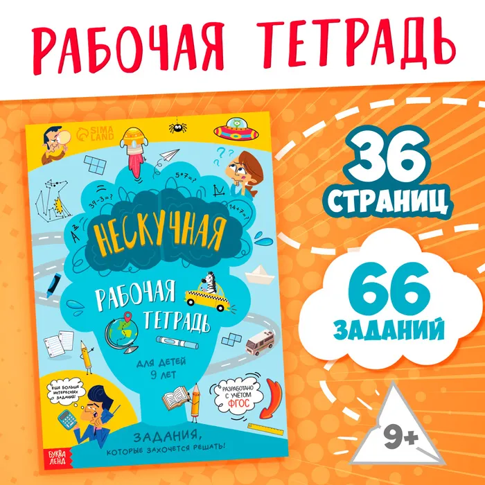 Книга «Нескучная рабочая тетрадь для детей 9 лет», 36 стр. — Характеристики