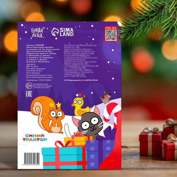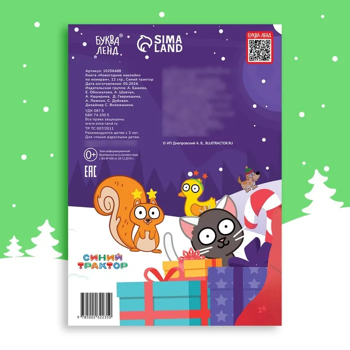 Книга «Новогодние наклейки по номерам», 12 стр., Синий трактор — Характеристики