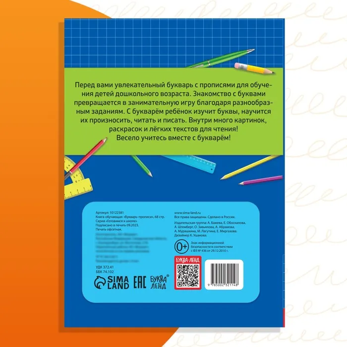 Книга обучающая «Букварь-прописи», 68 стр. — Характеристики