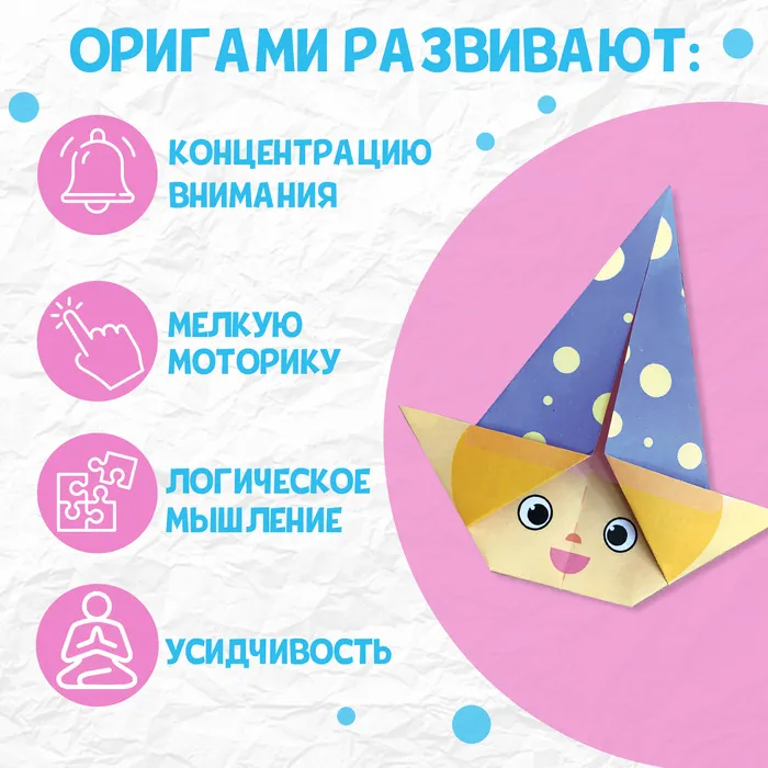 Занятия оригами помогают ребёнку освоить базовые навыки: развитие мелкой моторики, пространственного мышления и внимательности. Создание фигурок стимулирует творческое воображение и способствует улучшению координации движений.