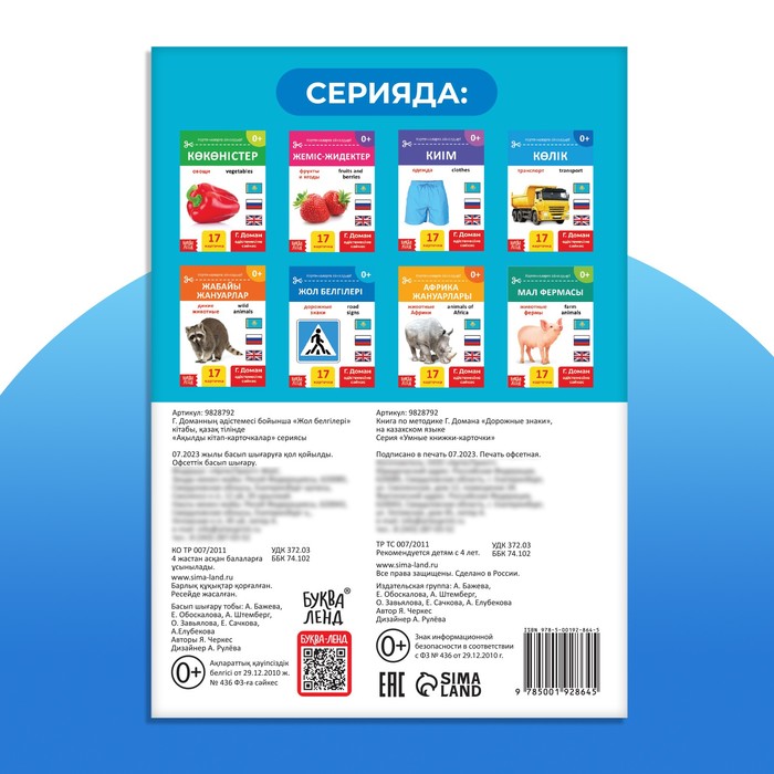 Книга по методике Г. Домана «Дорожные знаки», на казахском языке — Характеристики