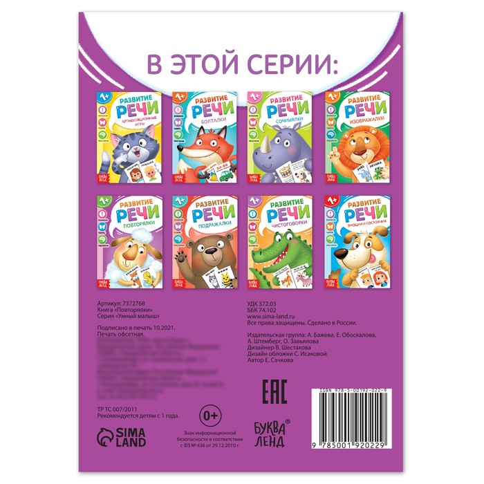 Книга по развитию речи «Повторялки», 20 стр. — Характеристики