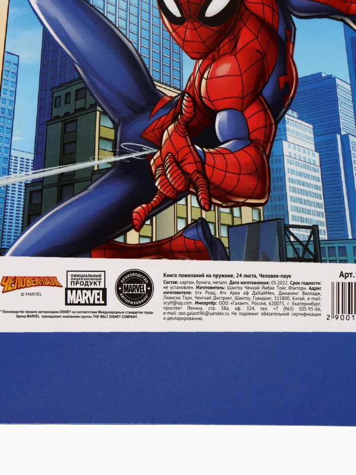 Книга пожеланий на пружине, 21,7х21 см, Человек-паук — Характеристики