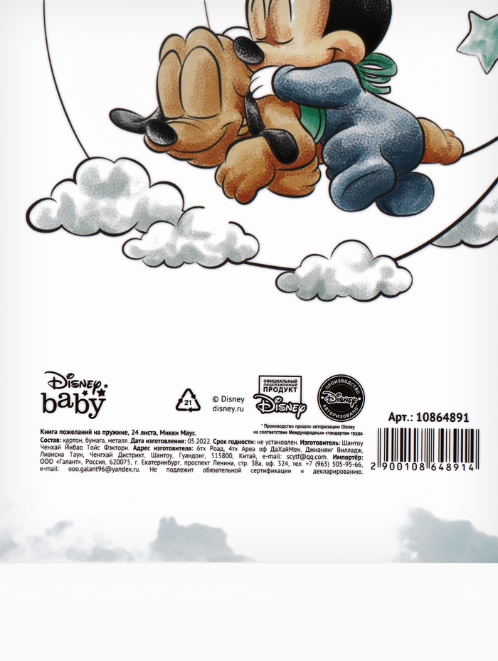 Книга пожеланий на пружине, 21,7х21 см, Микки Маус — Характеристики