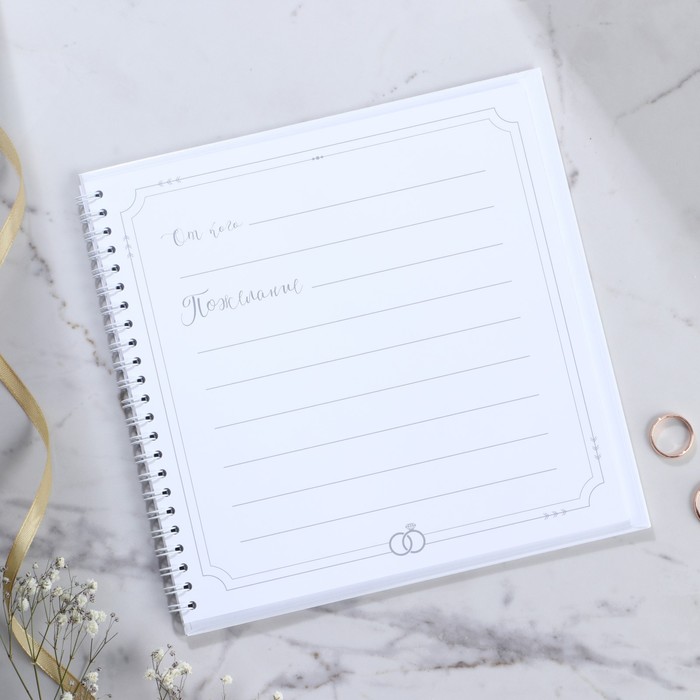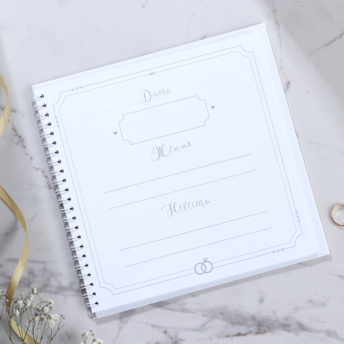 Гостевая книга - прекрасный атрибут свадебного вечера. Записывать пожелания в эту книгу понравится всем гостям. А вам понравится то, что через много много лет вы сможете окунуться еще раз в атмосферу вашего праздника. Идеально для свадьбы в стиле бохо, рустик, минимализм, прованс. Книга сделана из преплётного картона 1,25 мм с глянцевой ламинацией. В книге 40 односторонних листа размером 21х21 см плотностью 80 гр., первый лист для молодоженов с указанием даты торжества и имён, последующие 39 листов для искренних пожеланий счастливой семейной жизни жениху и невесте.