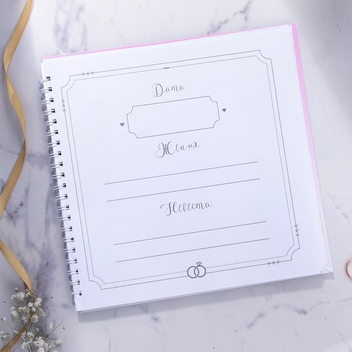 Книга пожеланий на свадьбу, на пружине, 21.5×21 см «В день нашей свадьбы»