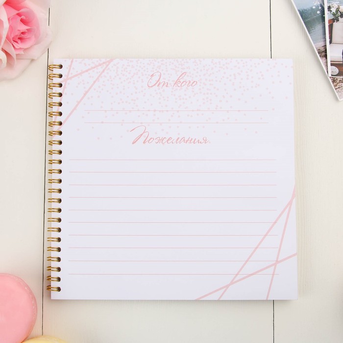 Гостевая книга - прекрасный атрибут свадебного вечера. Записывать пожелания в эту книгу понравится всем гостям. А вам понравится то, что через много много лет вы сможете окунуться еще раз в атмосферу вашего праздника. Идеально для свадьбы в стиле бохо, рустик, минимализм, прованс. Книга сделана из преплётного картона 1,25 мм с глянцевой ламинацией. В книге 40 односторонних листа размером 21х21 см плотностью 80 гр., первый лист для молодоженов с указанием даты торжества и имён, последующие 39 листов для искренних пожеланий счастливой семейной жизни жениху и невесте.
