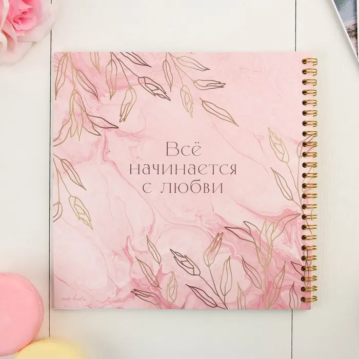 Книга пожеланий на свадьбу, на пружине, 21×21 см «Золотые цветы»