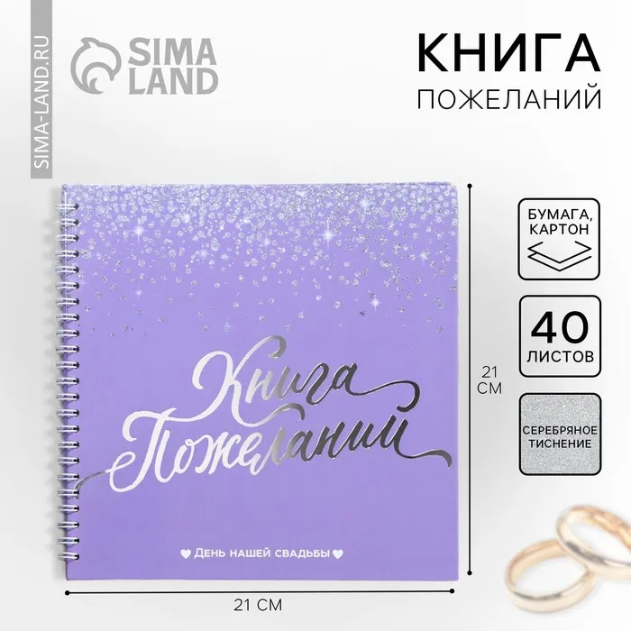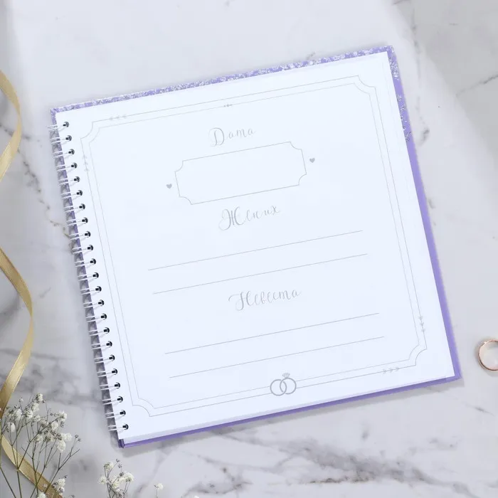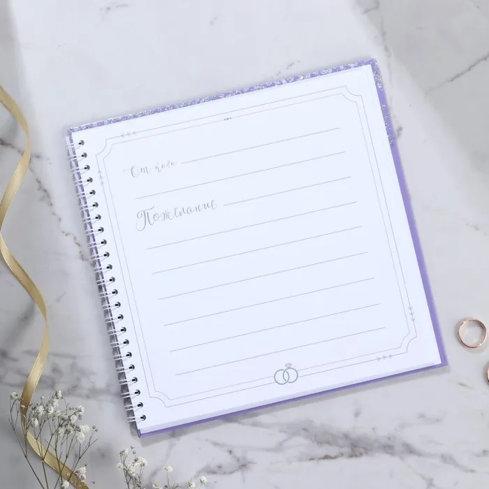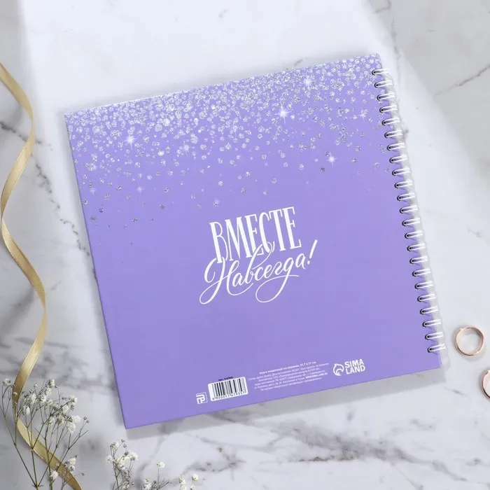 Книга пожеланий на свадьбу, на пружине «Фиолетовая с блёстками» — Характеристики