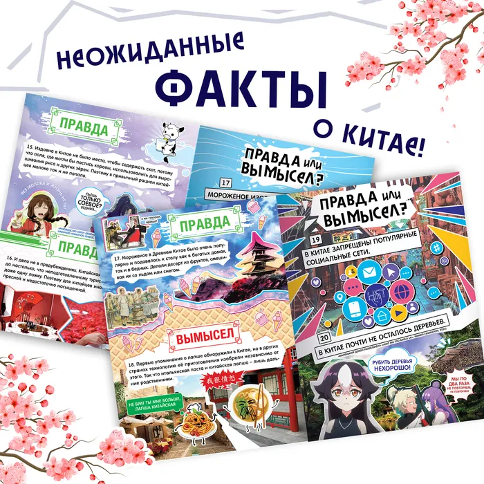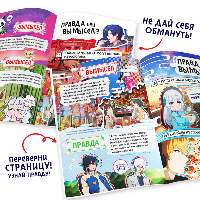 Книга «Правда или вымысел» позволит вам окунуться в культуру, историю и познакомит с обычаями Китая. Внутри вы найдёте устоявшиеся мифы и правдивые факты о Поднебесной. С данной книгой вы сможете не только расширить свой кругозор, но и весело провести время с друзьями, просто устройте увлекательную викторину: задавайте вопрос и собирайте голоса за каждый вариант.