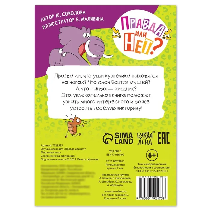 Эта книга поможет развеять самые популярные мифы о животных нашей планеты и ответит маленькому почемучке на множество вопросов.