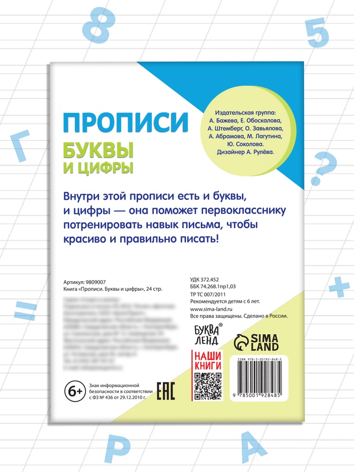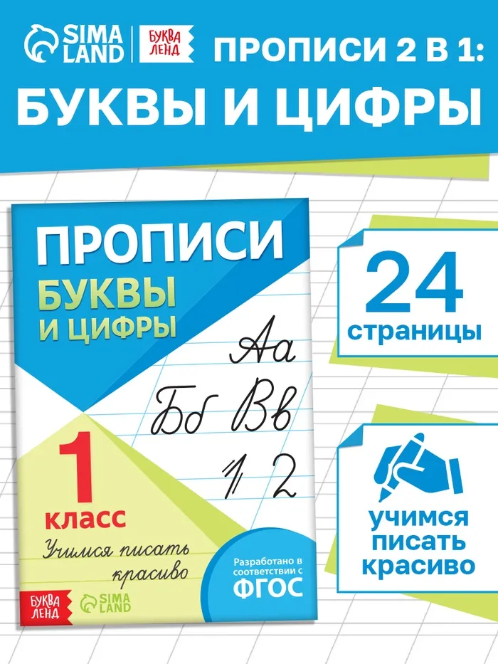 Книга «Прописи. Буквы и цифры», 24 стр. — Характеристики