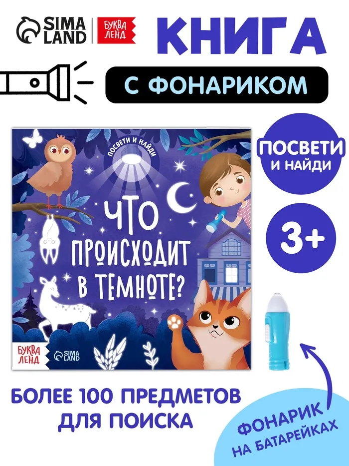 Книга с фонариком «Что происходит в темноте?», 24 стр. — Характеристики