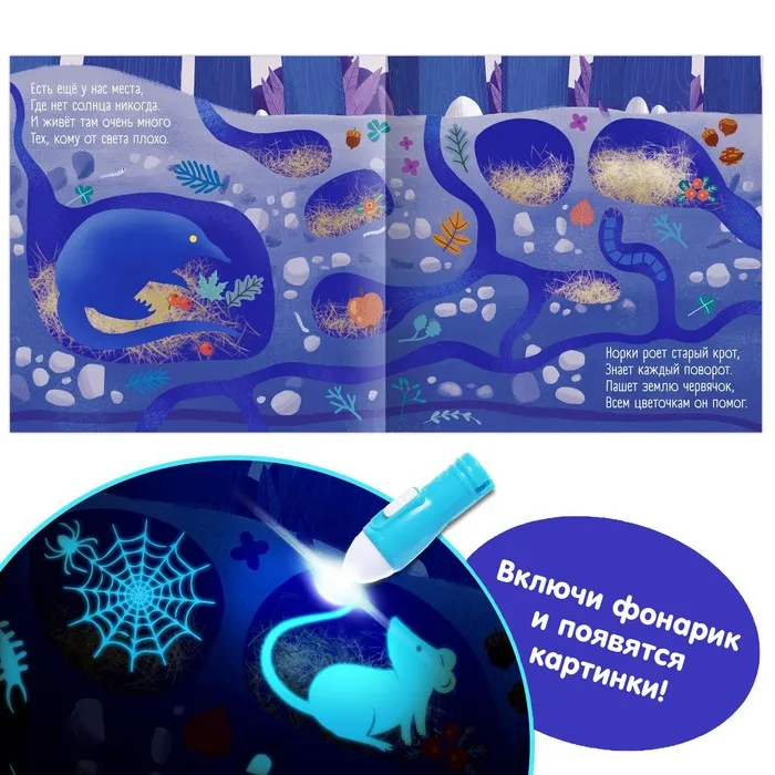 - Поднесите фонарик к страничкам, и вы увидите спрятанных животных.