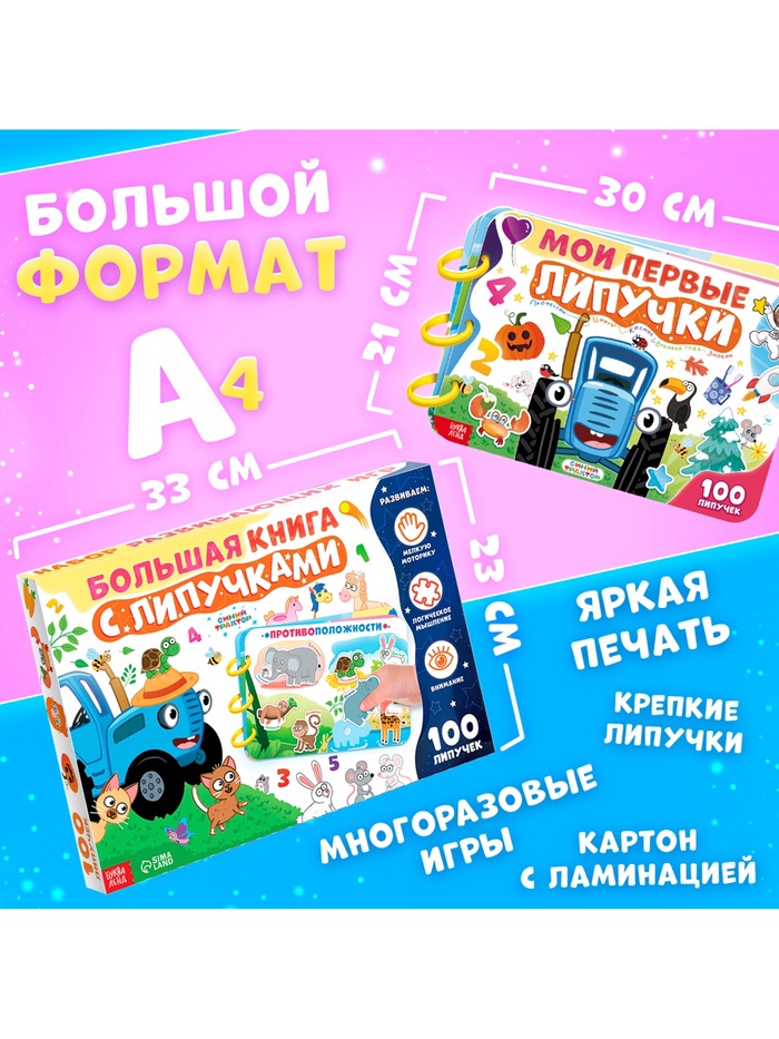 Книга с липучками «Синий трактор», А4, 100 липучек — Характеристики