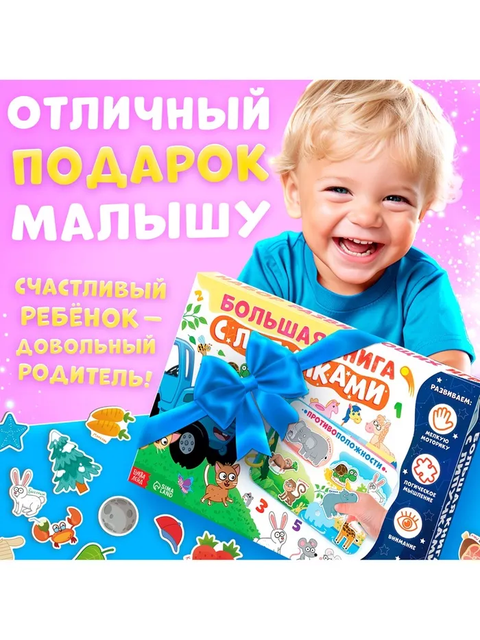 С помощью книги ребёнок постепенно знакомится с базовыми понятиями. Игры с липучками развивают мелкую моторику и учат концентрироваться. Это отличное начало для первых шагов в мир обучения!