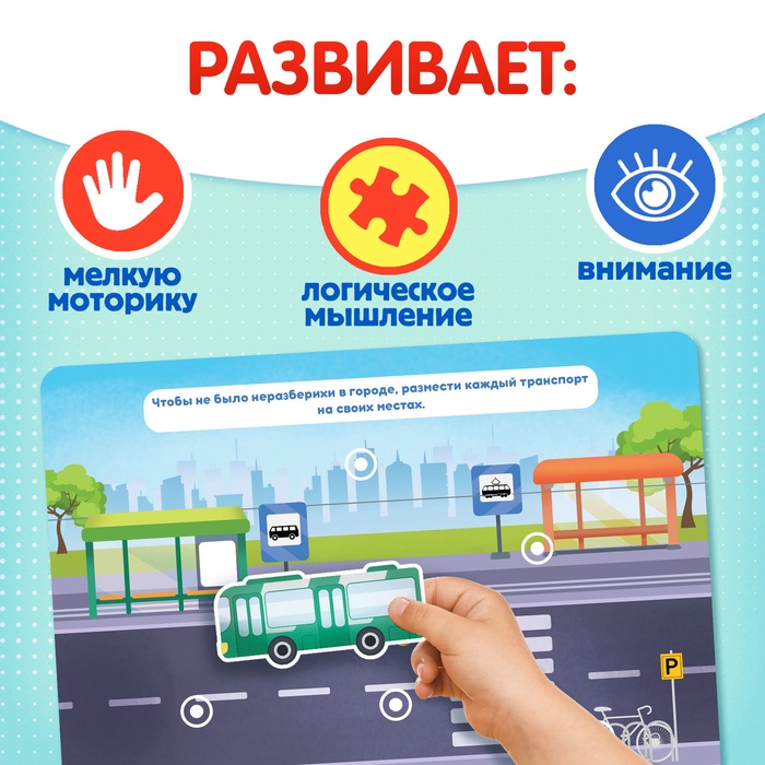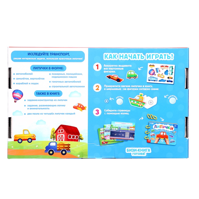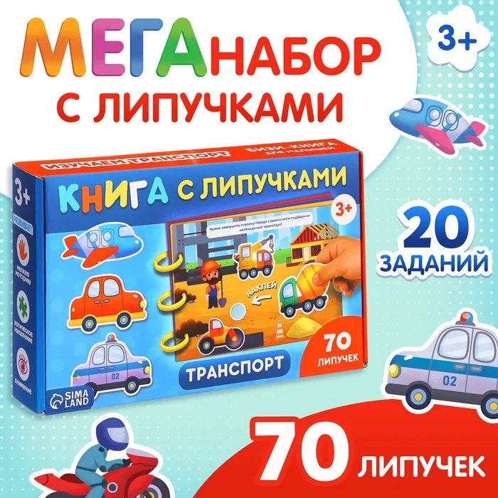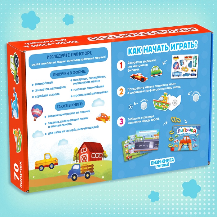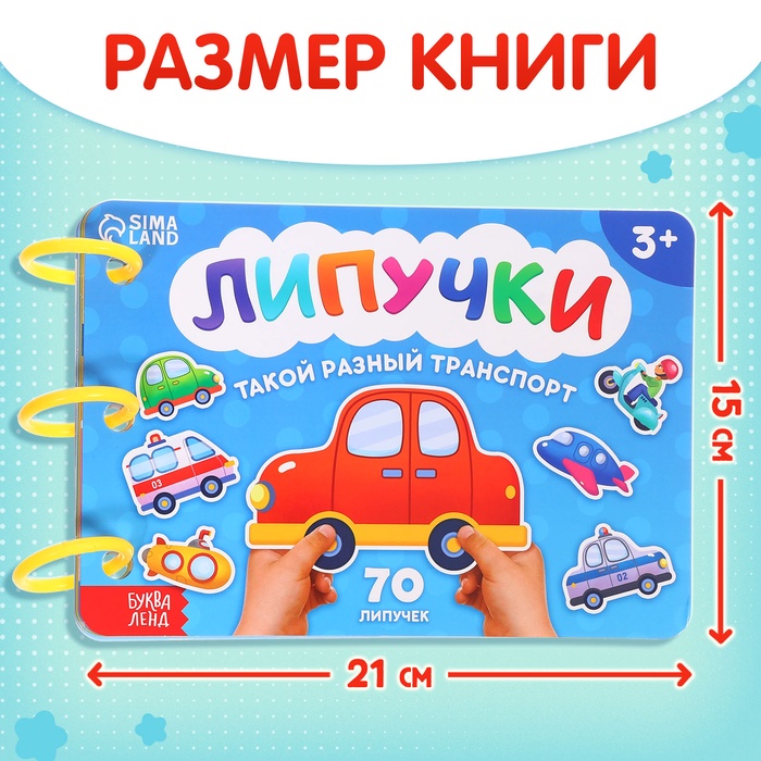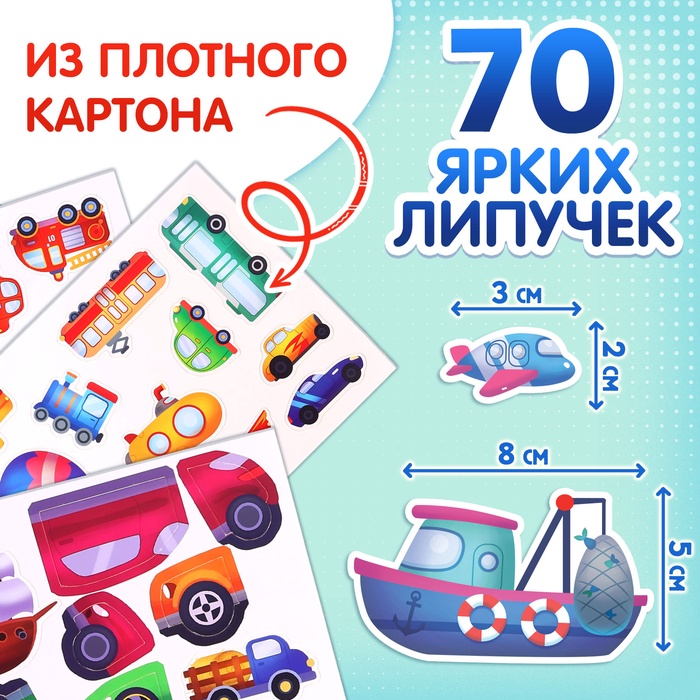 Книга с липучками «Транспорт», 70 липучек — Характеристики