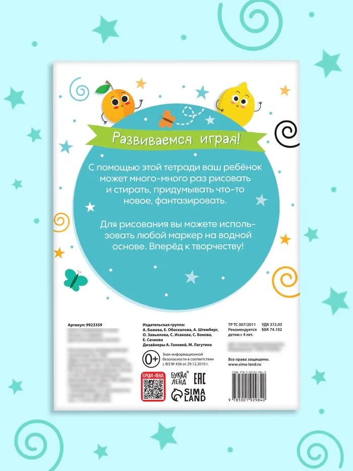 Книга с маркером «Развиваемся играя! Рисуем и стираем» станет увлекательным занятием для детей от 4 лет. Эти 24 страницы с возможностью рисовать и стирать открывают простор для творчества, фантазии и развития важных навыков.