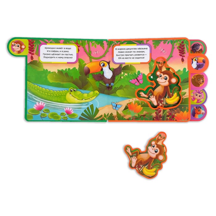 - Каждая страница содержит красочные изображения животных, обитающих на разных континентах, расширяя кругозор ребёнка.