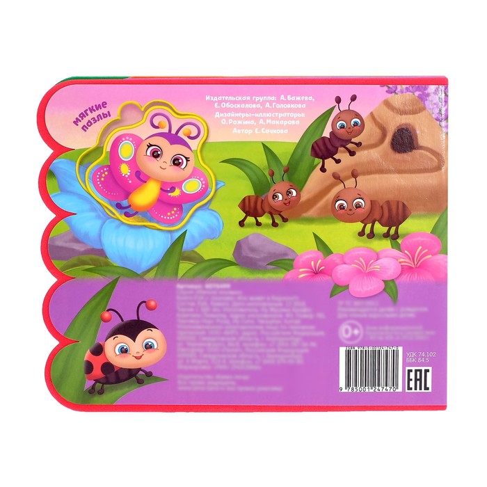 - 5 вынимающихся мягких пазлов добавляют интерактивности, развивая мелкую моторику и логическое мышление.