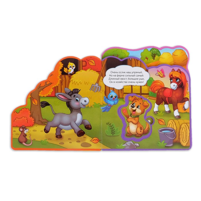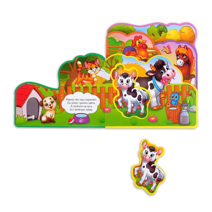 - Каждая страница содержит красочные изображения милых животных, живущих на ферме, расширяя кругозор ребёнка.