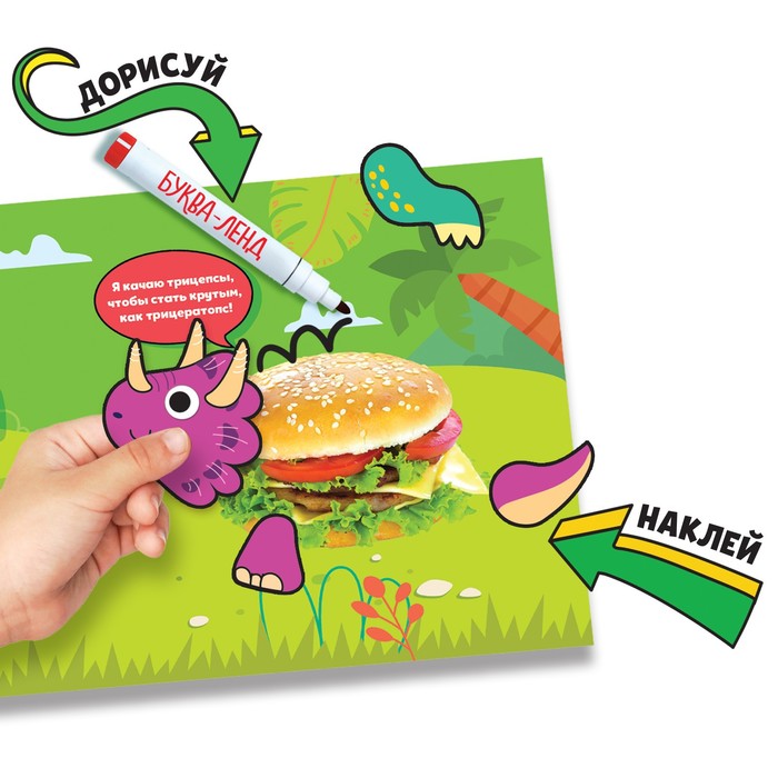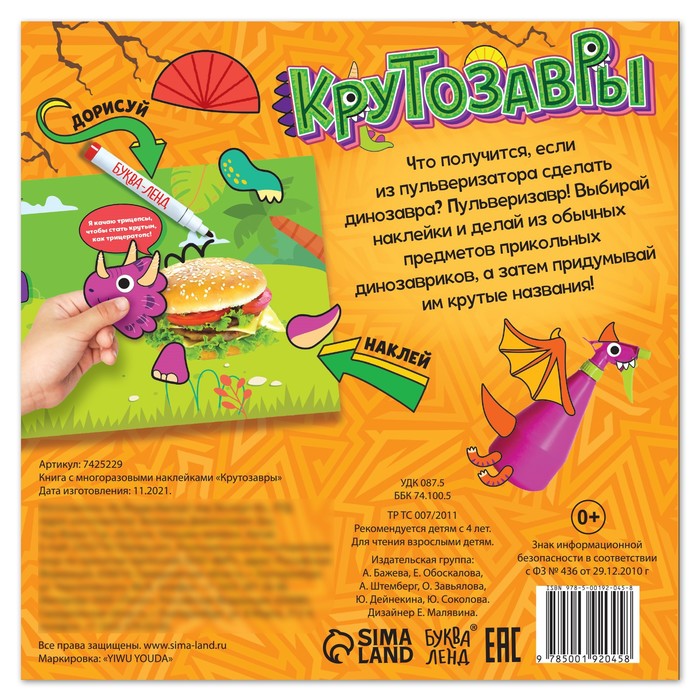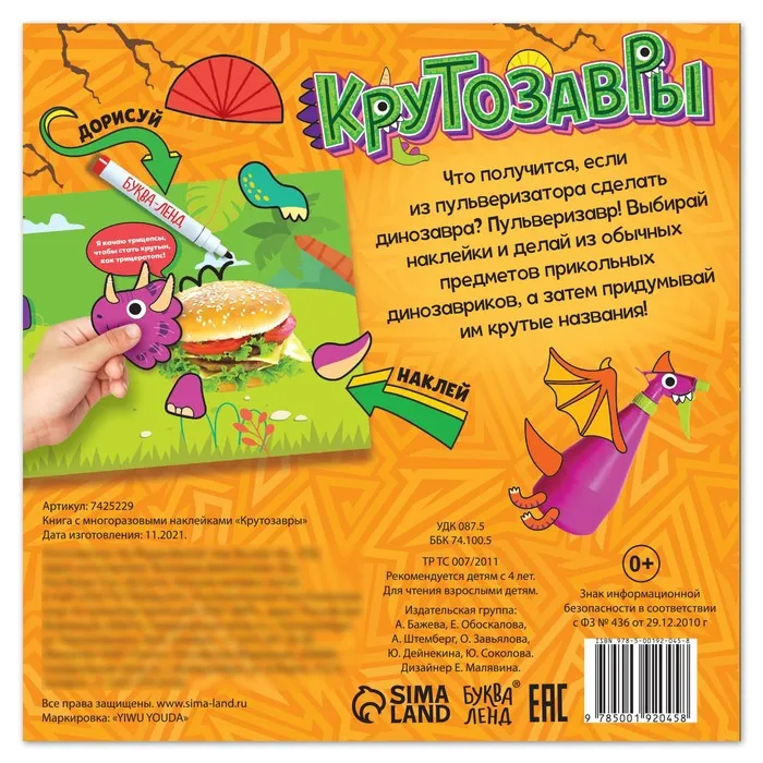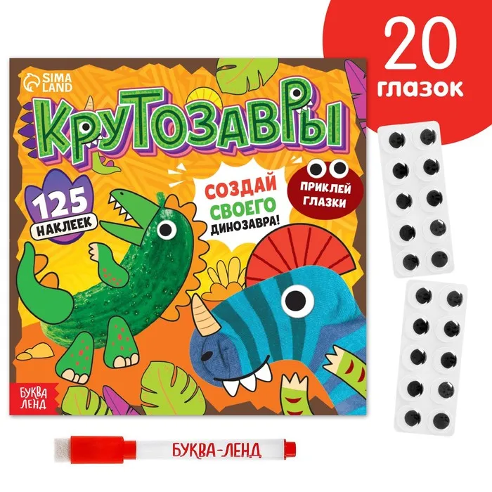 Книга с многоразовыми наклейками «Крутозавры», 12 стр., с маркером, 20 глазок — Характеристики