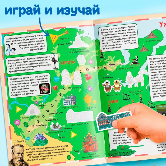 Наклейки позволят разместить обитателей и достопримечательности России по своим местам.