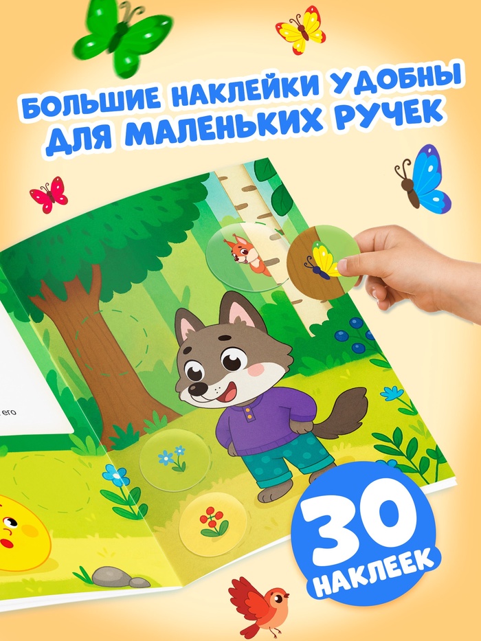 - Подходит для самых маленьких. Крупные и плотные наклейки легко брать пальцами, а страницы не рвутся при частом использовании.