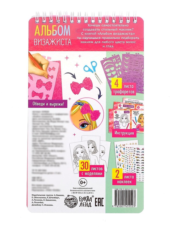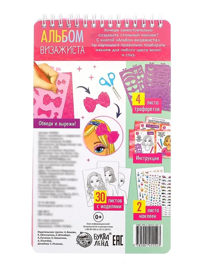 Книга с наклейками и трафаретами «Альбом визажиста» — Характеристики