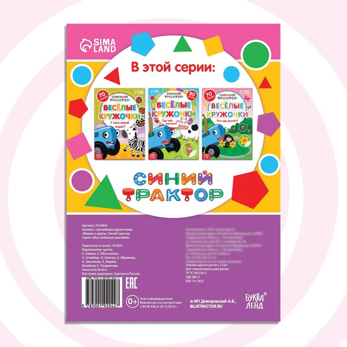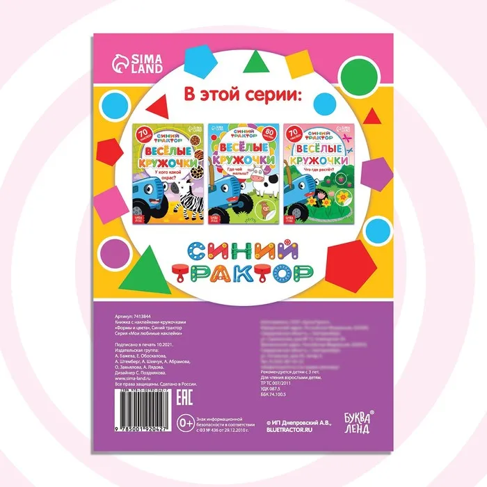 Книга с наклейками-кружочками «Формы и цвета», 16 стр., А5, Синий трактор — Характеристики