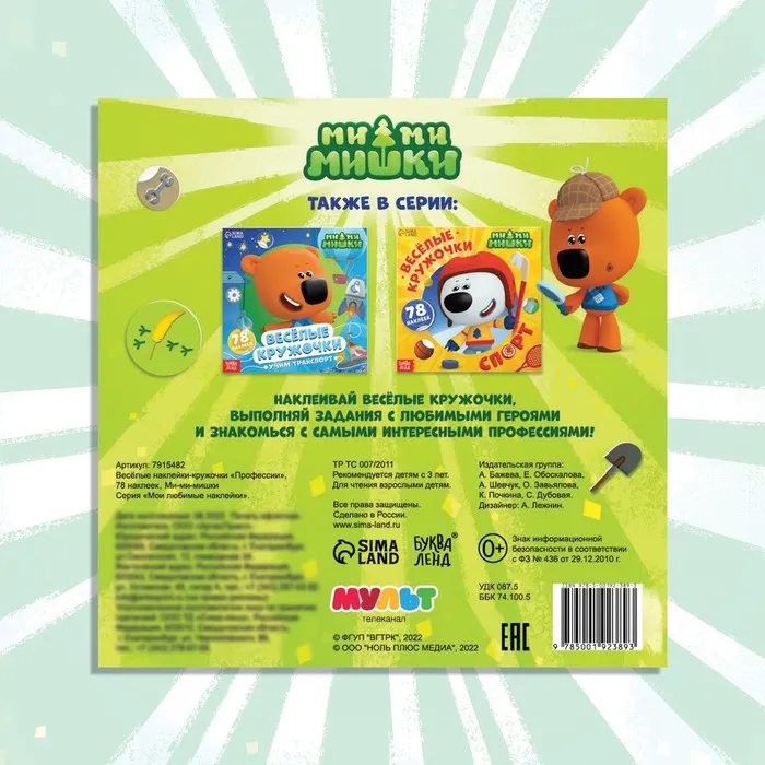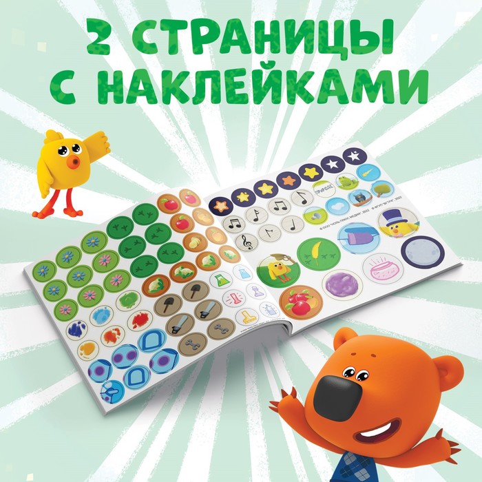 Книга с наклейками-кружочками создана для самых маленьких читателей. Прикрепляя яркие кружочки, ребёнок узнает много нового об окружающем мире вместе с героями любимого мультфильма «Ми-ми-мишки».