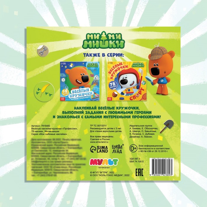 Книга с наклейками - кружочками «Профессии», 78 стикеров, 12 стр., Ми-Ми-Мишки — Характеристики