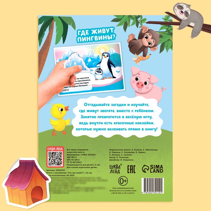 Книга с наклейками «Кто где живёт?», 16 стр., 30 наклеек, 3+ — Характеристики