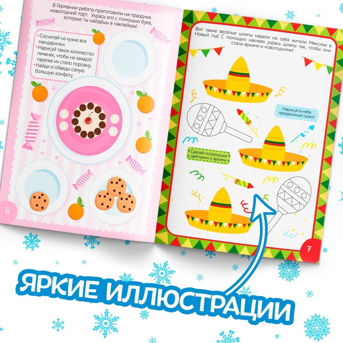 Книга с наклейками «Новый год шагает по планете», 12 стр., более 50 стикеров — Характеристики