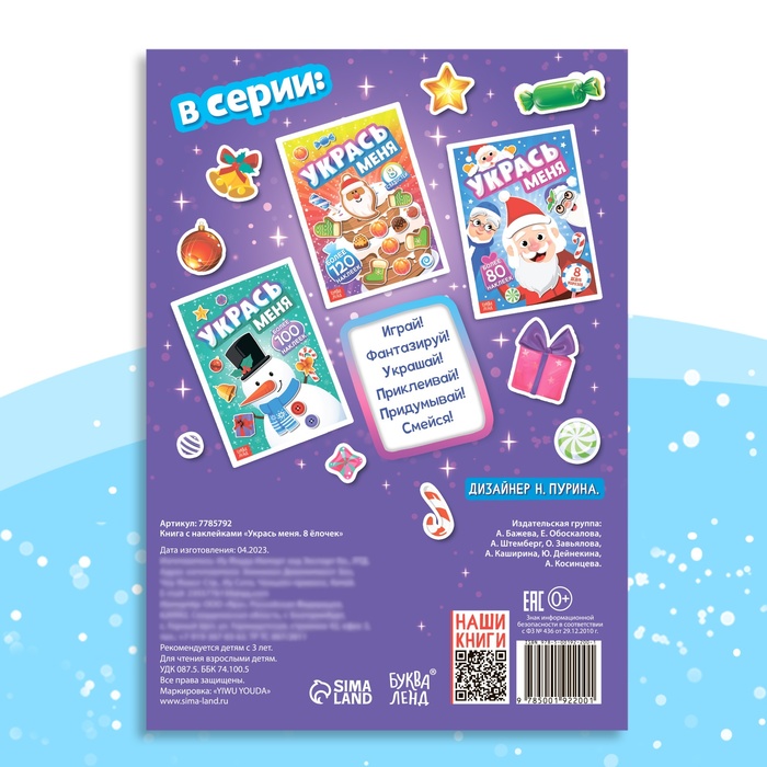 Книга с наклейками «Укрась меня. 8 ёлочек», 12 стр., более 150 стикеров — Характеристики