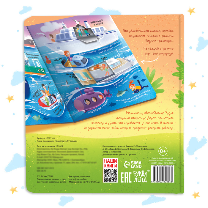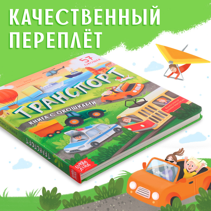 Книга с окошками «Транспорт», 57 окошек, энциклопедия — Характеристики