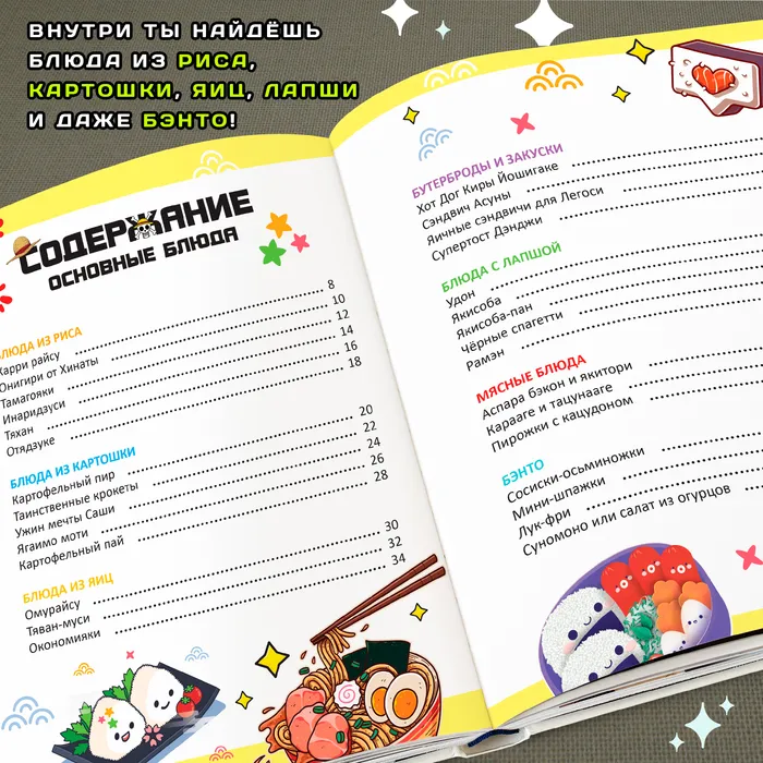 Книга с рецептами «Повар-отаку» станет отличным гидом для начинающих поваров и любителей оригинальной кулинарии. Вдохновляющий сборник включает 64 страницы, где автор предлагает простые и интересные рецепты, которые можно приготовить всей семьёй. Плотный переплёт делает книгу долговечной, а яркое оформление привлекает внимание.