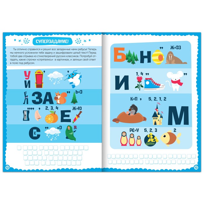 Книга с заданиями создана специально для любителей ребусов. Она поможет ребёнку скрасить ожидание праздника и потренировать полезные навыки.