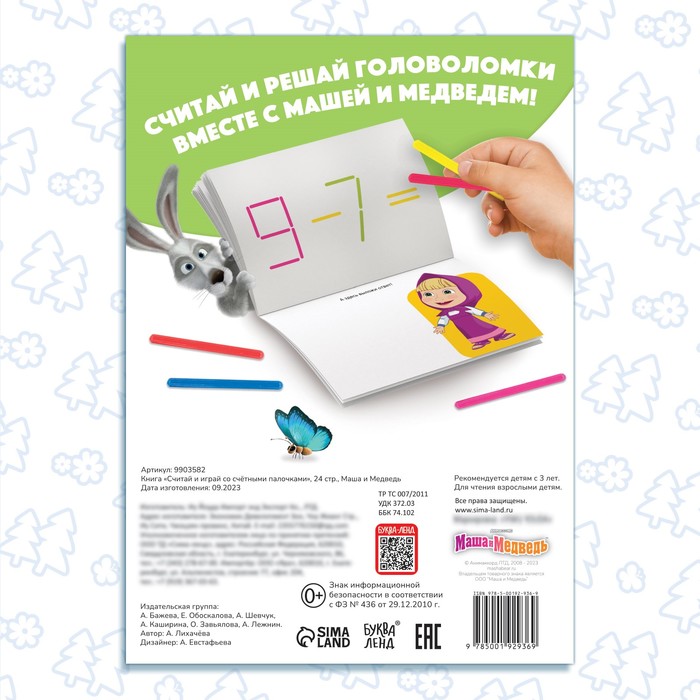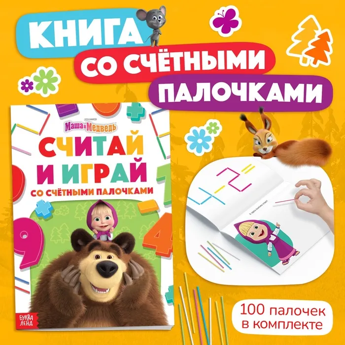 Набор «Считай и играй» — это увлекательное занятие для детей от 3 лет, вдохновлённое любимым мультфильмом «Маша и Медведь». В комплект входит книга с мягким переплётом и 100 палочек для творческих заданий. Этот набор подходит как для мальчиков, так и для девочек, особенно любящих тематику мультфильмов.