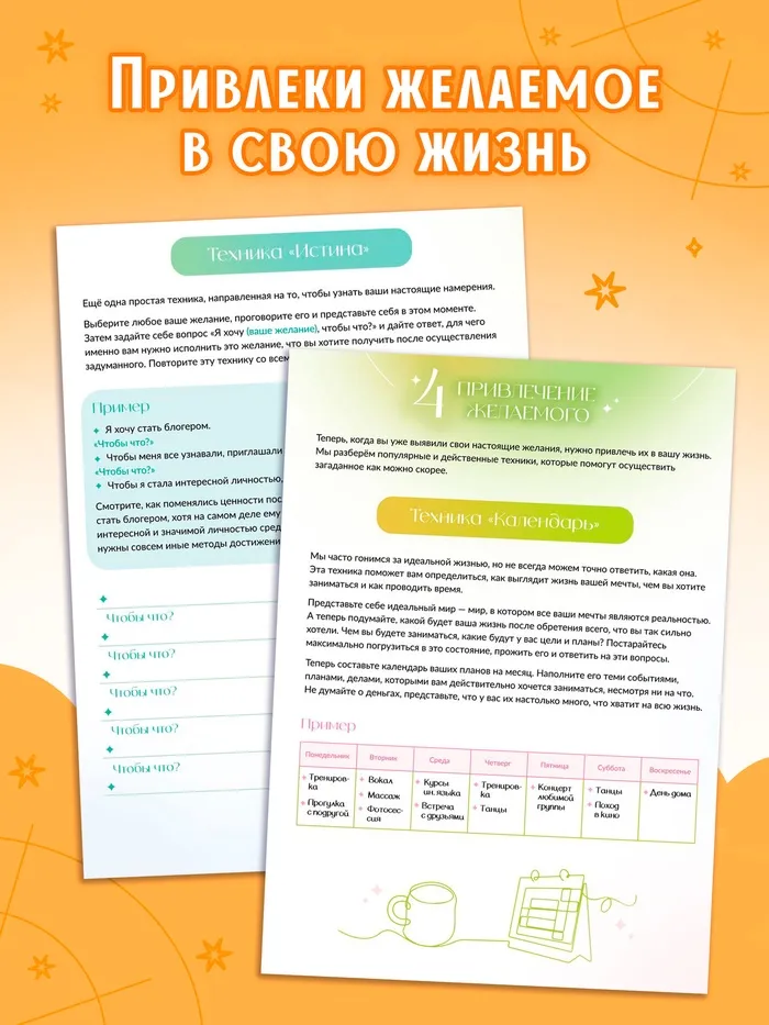 Книга «Секреты исполнения желаний» — это практическое руководство для подростков, которые хотят научиться превращать мечты в реальность. 12 проверенных практик и техник помогут разобраться, почему желания не всегда сбываются, и что нужно делать, чтобы они стали явью. Подходит для девочек от 12 лет, книга станет источником вдохновения и полезных навыков.